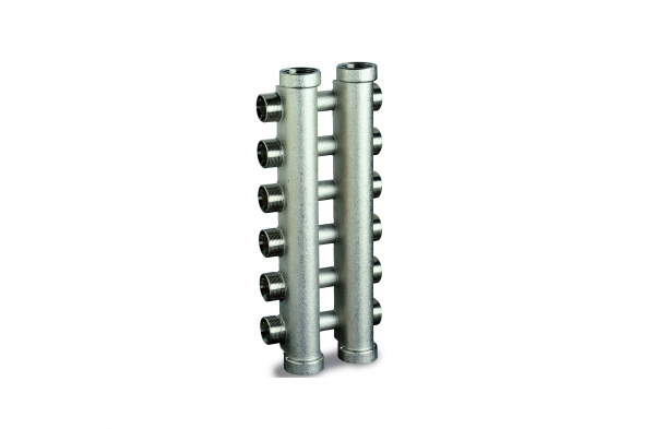 I collettori complanari sono adatti per la distribuzione dell’acqua negli impianti di riscaldamento con distribuzione orizzontale di tipo a raggiera. Infatti gli attacchi dei circuiti sono sfalsati per la mandata e il ritorno: questo permette un agevole collegamento dei circuiti senza sovrapposizione delle tubature della mandata e del ritorno.