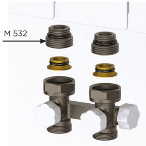 Las válvulas coaxiales tienen un tornillo que ofrece la posibilidad de preajuste gracias a un anillo de acetal perfilado. El tornillo termostático permite sustituir una de las juntas tóricas de la varilla de control sin necesidad de vaciar el sistema. Las válvulas se fabrican con un acabado niquelado. Los retenedores están sellados por una junta tórica en el tapón y, si es necesario, por una junta tórica adicional entre el cuerpo y el tapón. La estanqueidad del cierre con el tapón se consigue mediante una junta tórica y una junta cónica metálica. Los detentores están fabricados con un acabado niquelado. Todos los detentores tienen la opción de ajustar el caudal limitando la elevación del obturador.