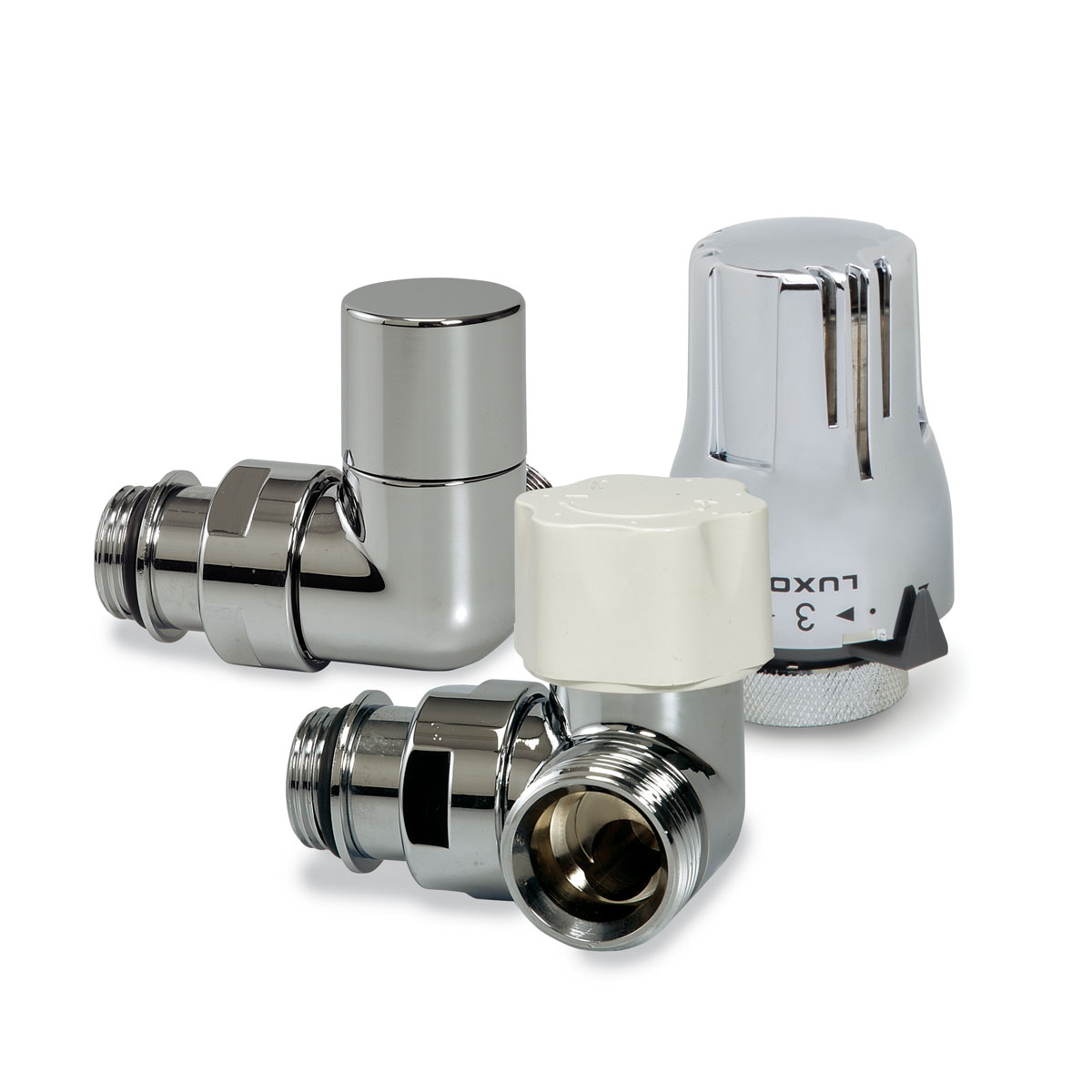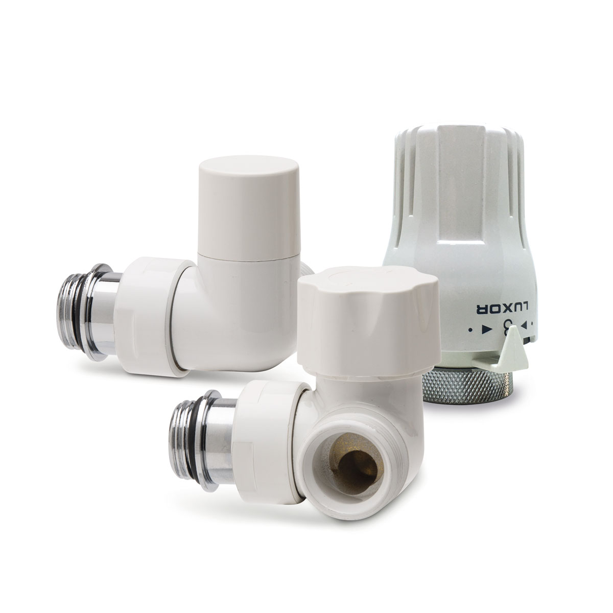 Kit completo de termostato coaxial derecho para conexión a radiadores. Compuesto por: RCD 269/A + DCS 33/A + TT 3000. Conexión tipo Eurocono.