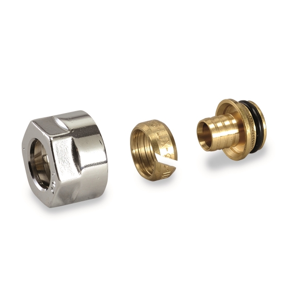 Raccordo a compressione per tubo in polietilene, polibutene e polipropilene, filetto da G3/4 eurocono.