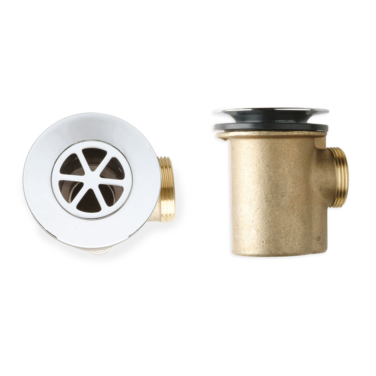 Bonde en laiton avec bride et grille en laiton chromé.