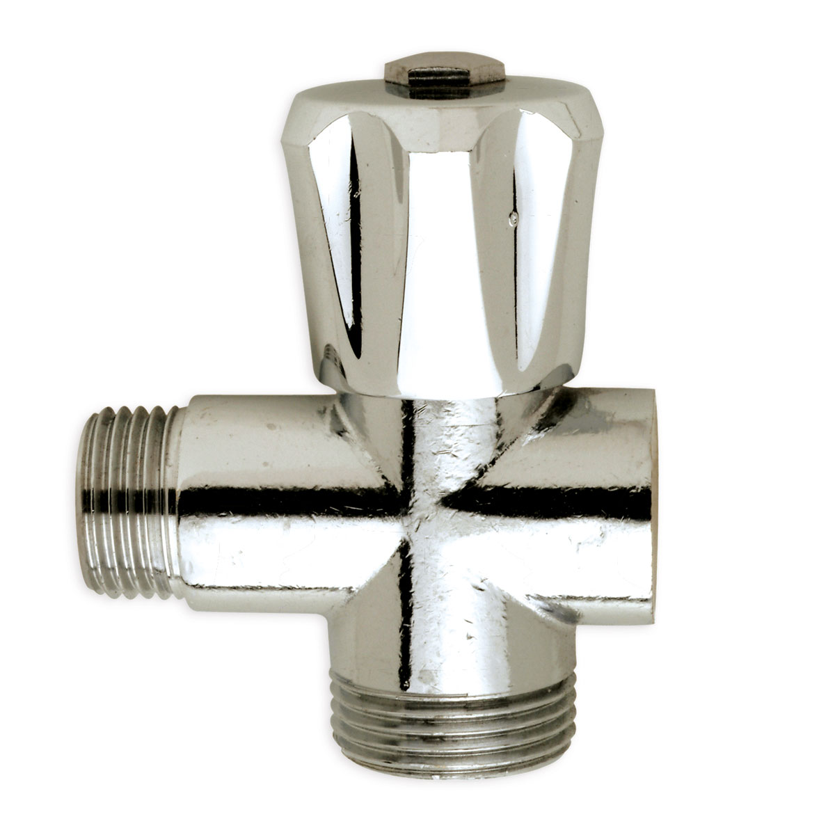 Rubinetto intermedio a vitone con attacco per lavatrice e maniglia a 6 punte.