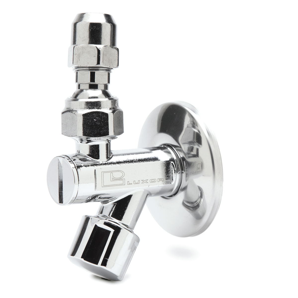 Rubinetto sottolavabo a vitone con filtro, rosetta scorrevole e cartuccia a 3 pezzi dado alto a uscita orientabile.