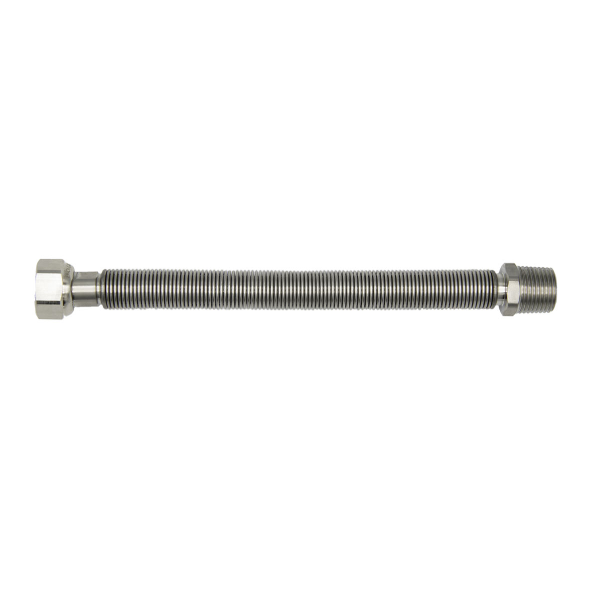 Tubo flessibile DN 15 per il collegamento tra la rete idrica e le caldaie murali. Flessibile metallico estensibile con soffietto in acciaio inox disponibile in diverse misure per soddisfare le esigenze dell’installatore e dei produttori di caldaie murali. Raccordo Maschio e Femmina.