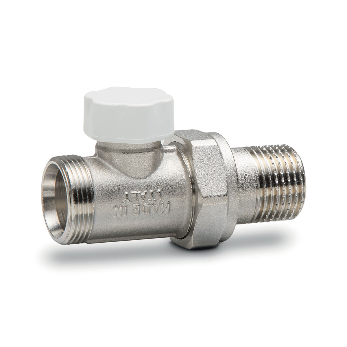 Detentore di regolazione diritto. Attacco tubo rame e tubo plastica.